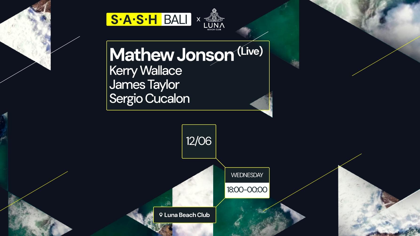 ★ S.A.S.H Bali ★ Mathew Jonson (Live) ★ Kerry Wallace ★ Luna Beach Club ★ Wednesday 12th June ★
