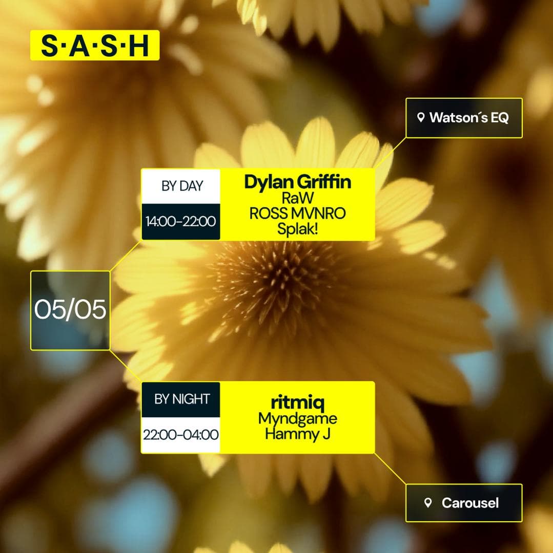 ★ S.A.S.H By Day & Night ★ Dylan Griffin ★ ritmiq ★ Sunday 5th May ★