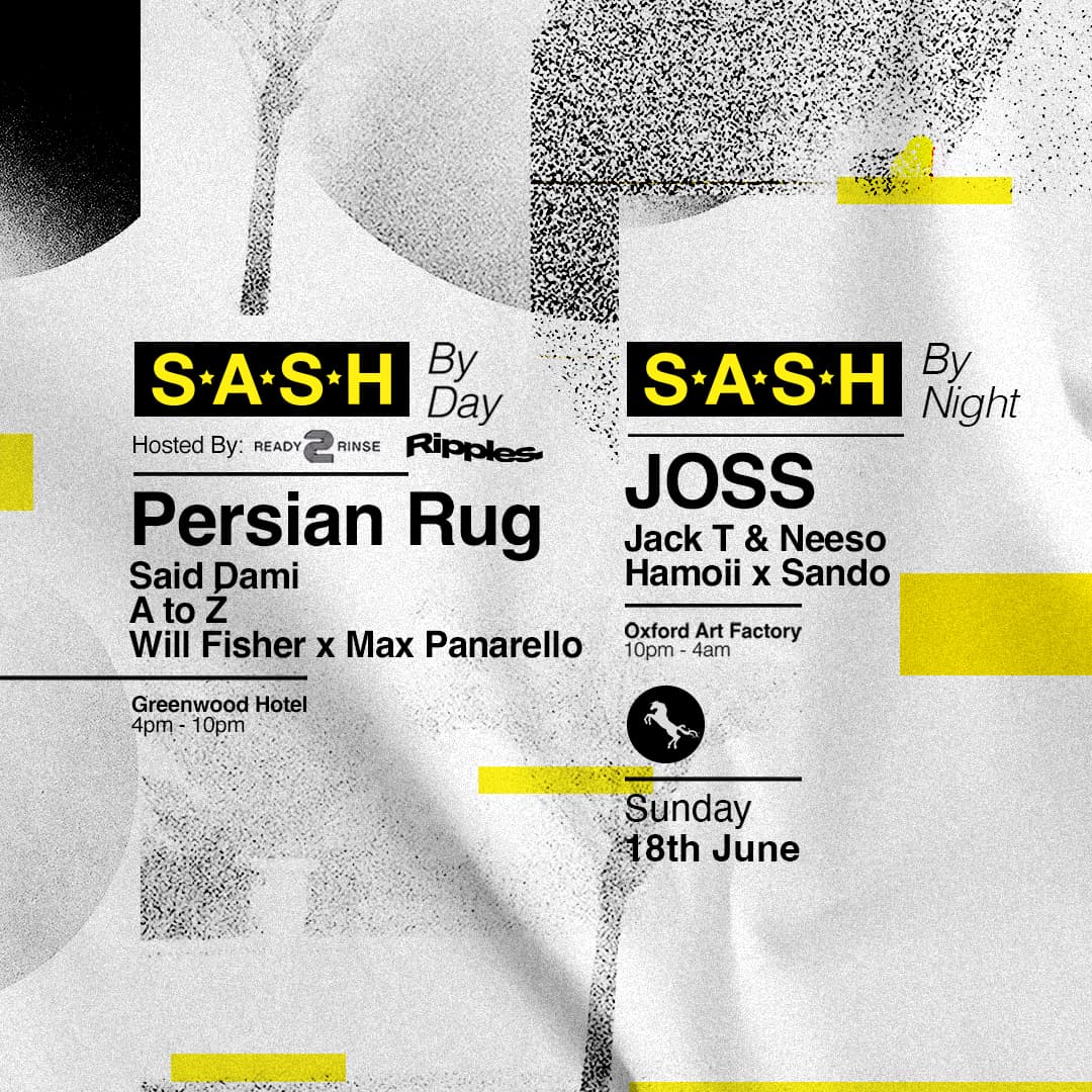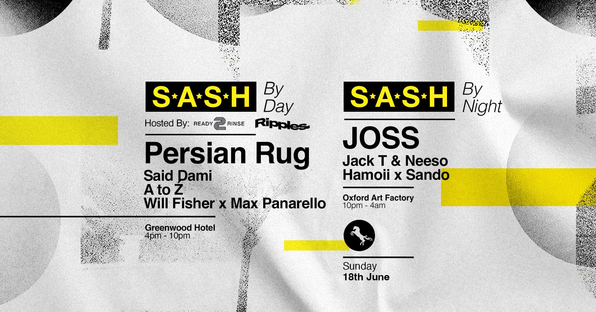 ★ S.A.S.H By Day & Night ★ Ripples x Ready 2 Rinse ★ JOSS ★ Sunday 18th June ★