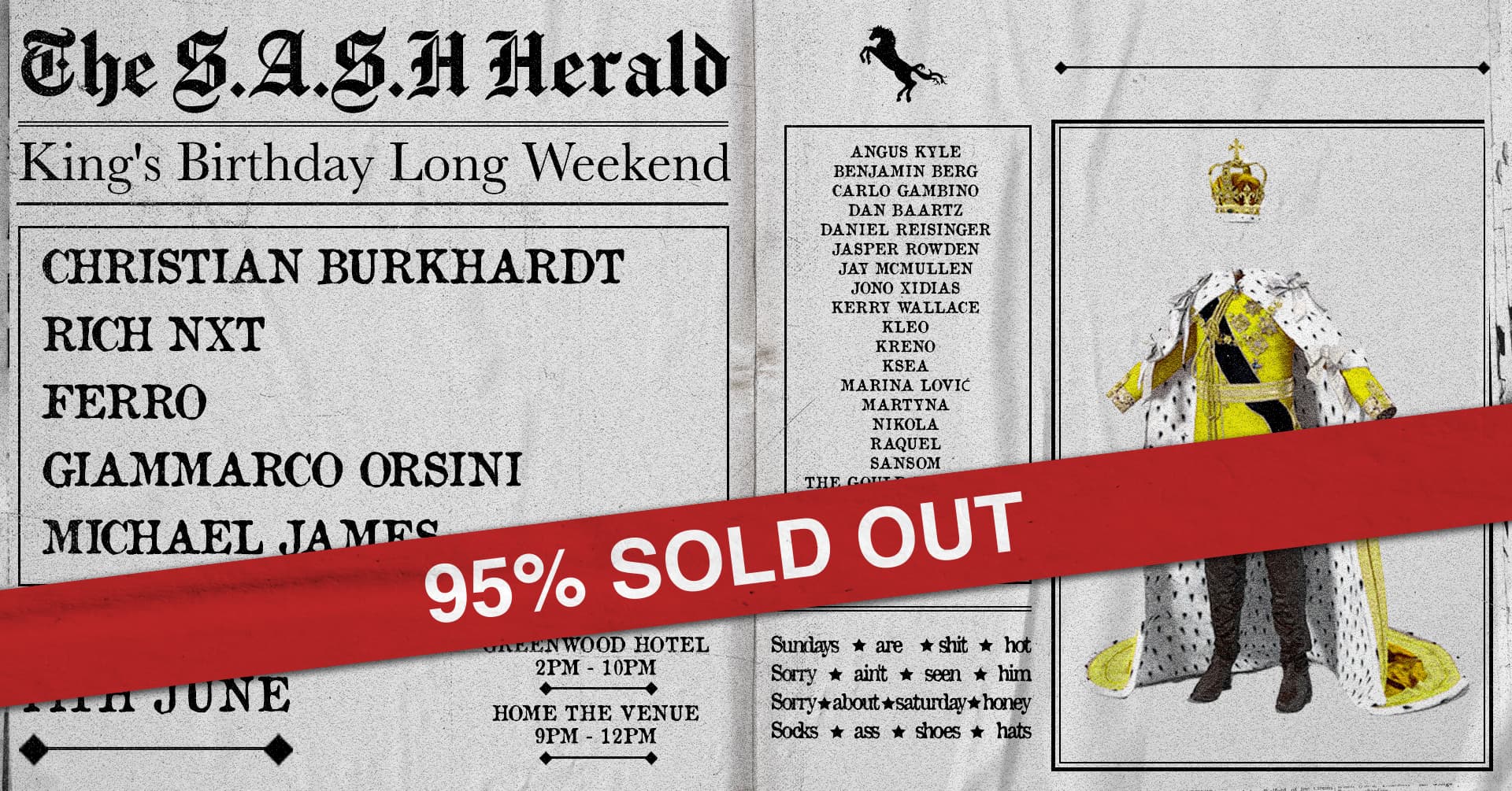 ★ S.A.S.H By Day & Night ★ King’s Birthday Long Weekend ★ Christian Burkhardt ★ Rich NxT ★ Ferro ★ Giammarco Orsini ★ Michael James ★