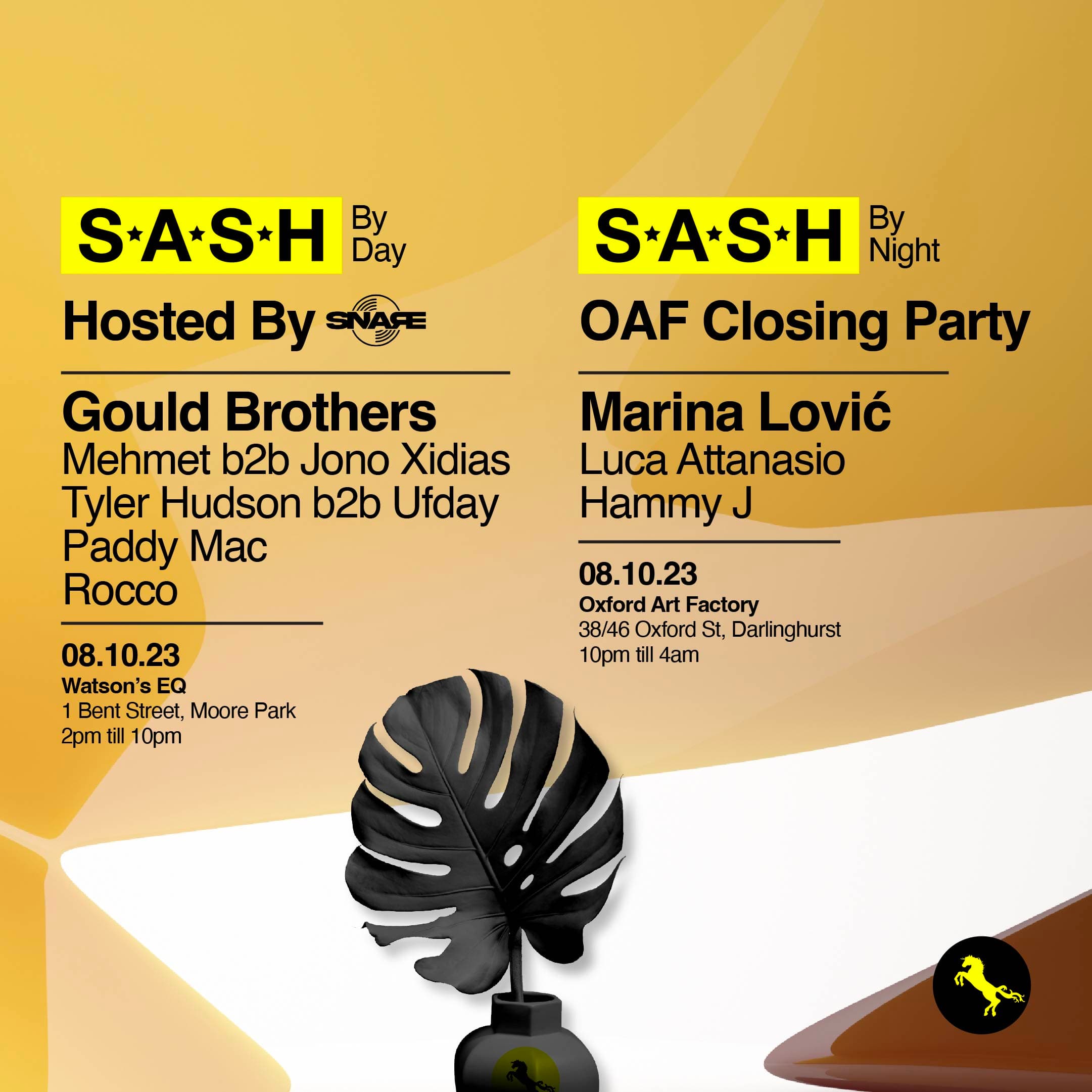 ★ S.A.S.H By Day & Night ★ Snare F.T. Gould Brothers ★ OAF Closing Party F.T. Marina Lović ★