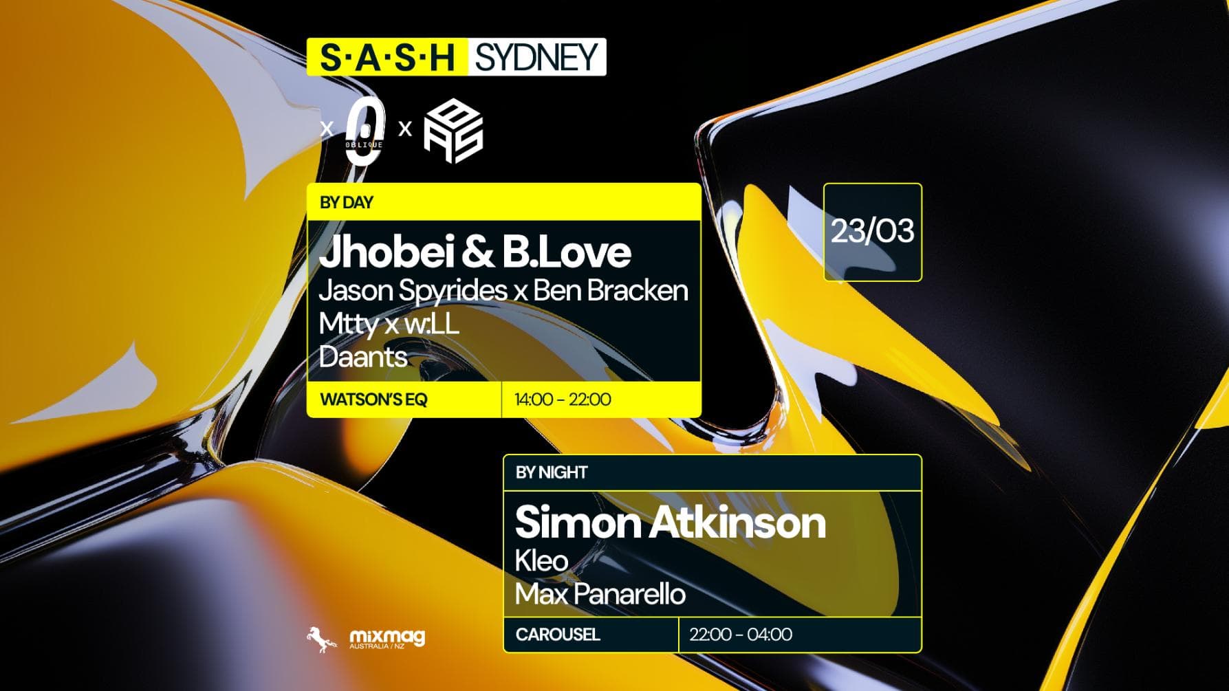 ★ S.A.S.H By Day & Night ft. Addition By Subtraction & oblique ★ Jhobei & B.Love ★ Simon Atkinson ★ Sunday March 23rd ★