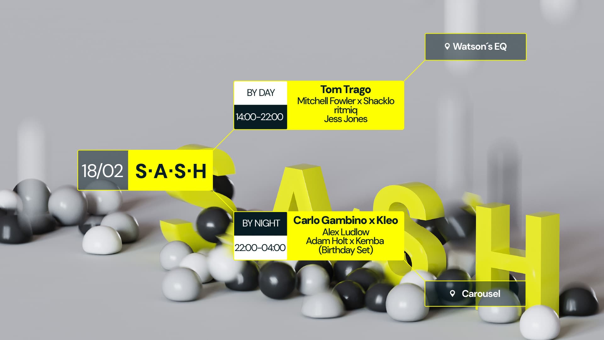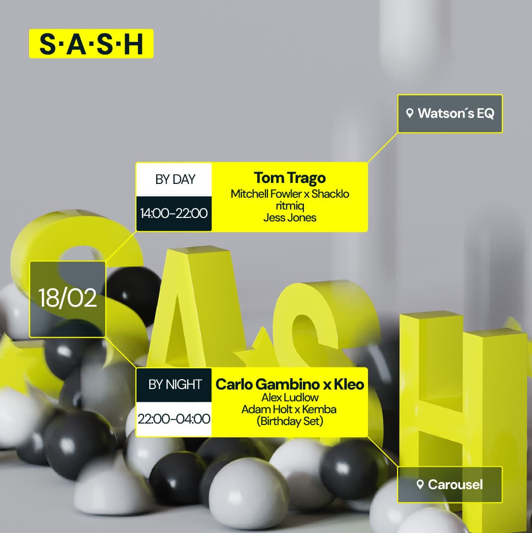 ★ S.A.S.H By Day & Night ★ Tom Trago ★ Carlo Gambino x Kleo ★ Sunday 18th February ★