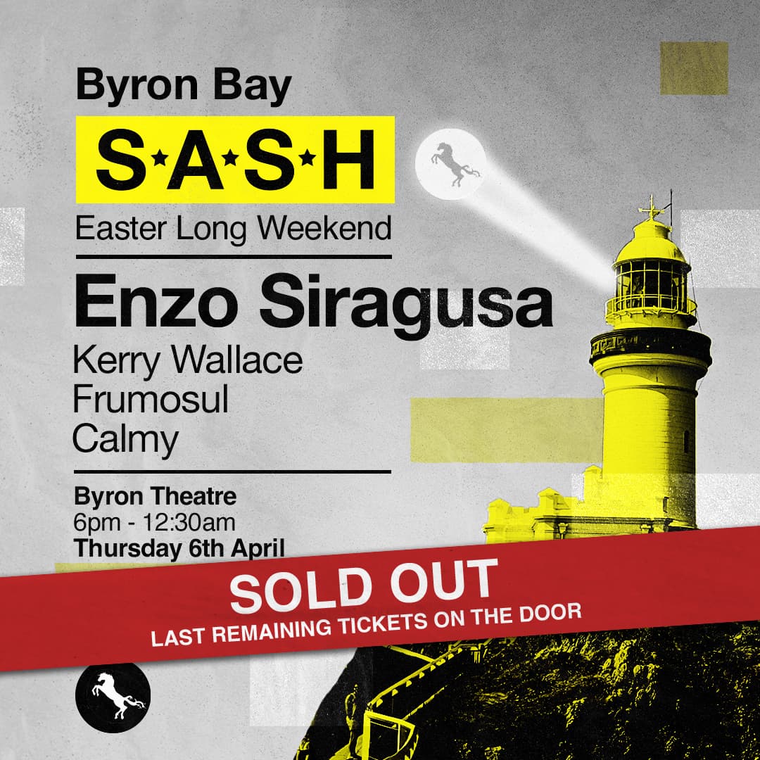 Assembling alongside the Londoner, our captain of S.A.S.H, Kerry Wallace steps into the warmup following on from Frumosul in the early evening. To get the ground running for the masses of Byron, the winner of the mix competition plugs in the CDJs and flicks on the lights to this iconic party. As the sun begins to set, casting a golden glow over Byron’s surroundings, the stars will surface, signalling the start of an unforgettable night. The party will continue long into the evening as Enzo Siragusa will be providing the perfect atmosphere in the heart of Byron Bay.