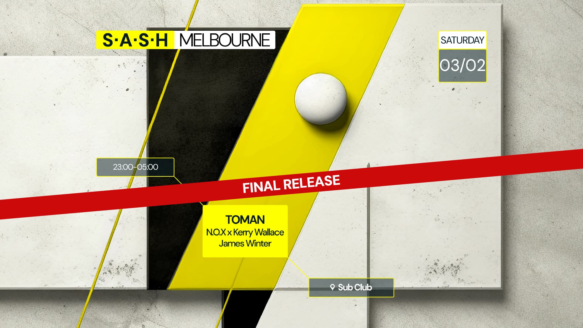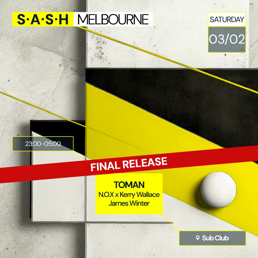 ★ S.A.S.H Melbourne ★ TOMAN ★ Saturday 3rd Feb ★ Subclub ★ FINAL RELEASE