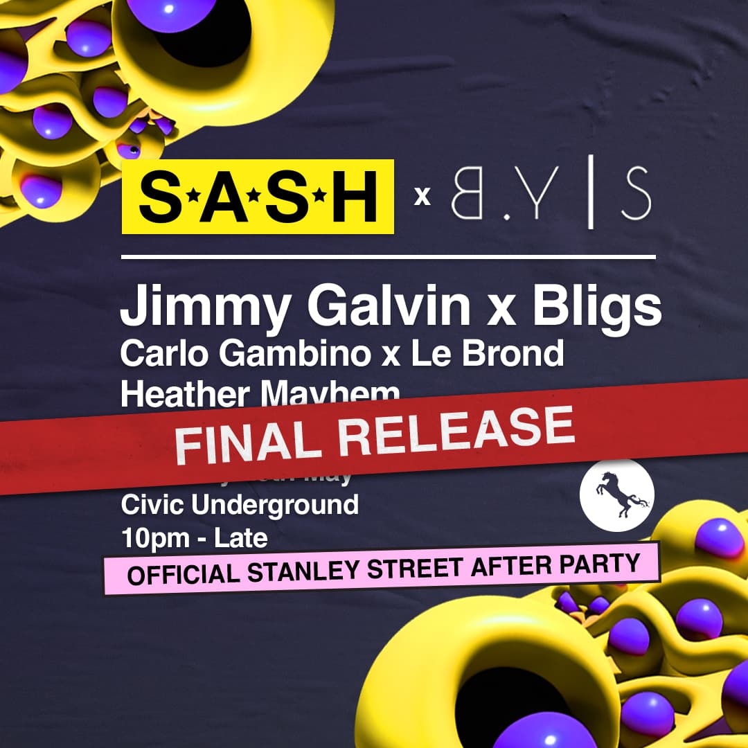 ★ S.A.S.H x By Your Side ★ Civic Underground ★ Stanley Street After Party ★ Saturday 20th May ★
